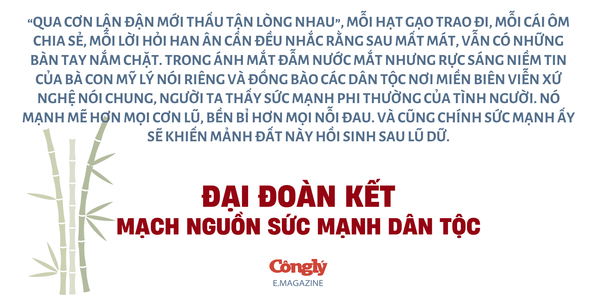 Thế nhưng, giữa khốn khó, mất mát bủa vây, giữa gió dông vần vũ, vẫn có một ngọn lửa được thắp lên. Đó là ngọn lửa tình người. Rất nhiều bàn tay đã chìa ra, rất nhiều bát cơm, manh áo được sẻ chia. Chính tinh thần đoàn kết ấy đã trở thành điểm tựa, thắp lên hy vọng để người dân nơi miền biên viễn đứng dậy sau đổ nát.