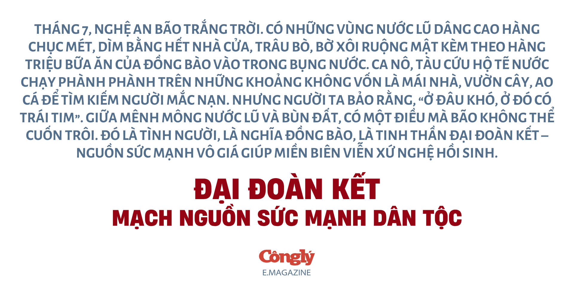 Miền Tây Nghệ An những ngày cuối tháng 7 chìm trong lũ dữ. Khắp “9 bản 10 mường”, đi đến đâu cũng chỉ thấy sự hoang tàn. Nhà cửa đổ nát, gia súc gia cầm bị cuốn trôi, ruộng đồng mênh mông nước.