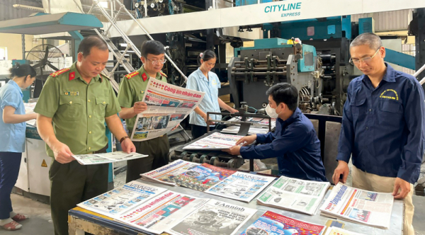 Đại tá Nguyễn Mạnh Cường, Phó Cục trưởng Cục Công nghiệp an ninh kiểm tra công tác in tại Công ty In Ba Đình.