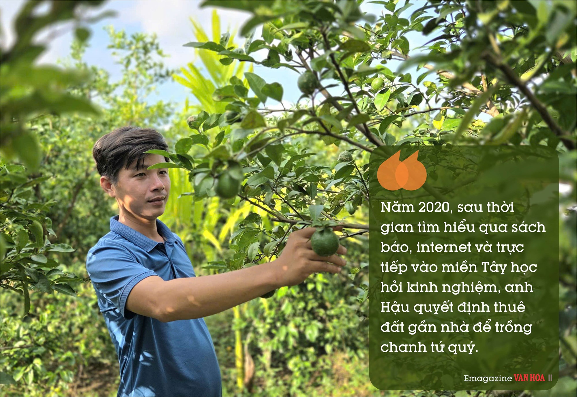 Năm 2020, sau thời gian tìm hiểu qua sách báo, internet và trực tiếp vào miền Tây học hỏi kinh nghiệm, anh Hậu quyết định thuê đất gần nhà để trồng chanh tứ quý. Khó khăn lớn nhất là đất sét nặng, thoát nước kém. Anh kiên trì cải tạo bằng rơm rạ, dây đậu phộng, phân chuồng và bánh dầu đậu phộng nhằm tăng độ tơi xốp và dinh dưỡng.