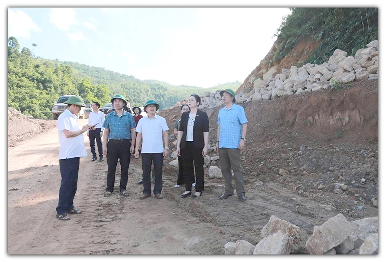 Đồng chí Ma Thị Thúy, Ủy viên BCH Đảng bộ tỉnh, Phó Trưởng Đoàn ĐBQH hoạt động chuyên trách tỉnh khảo sát tuyến đường Hồ Chí Minh đoạn chợ Chu - ngã ba Trung Sơn đang xây dựng.