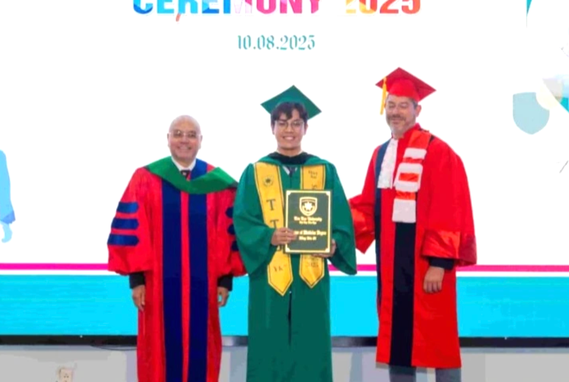 Âu Nhật Huy nhận bằng tốt nghiệp tại Trường Đại học Tân Tạo hồi tháng 8/2025. (ảnh TTU)