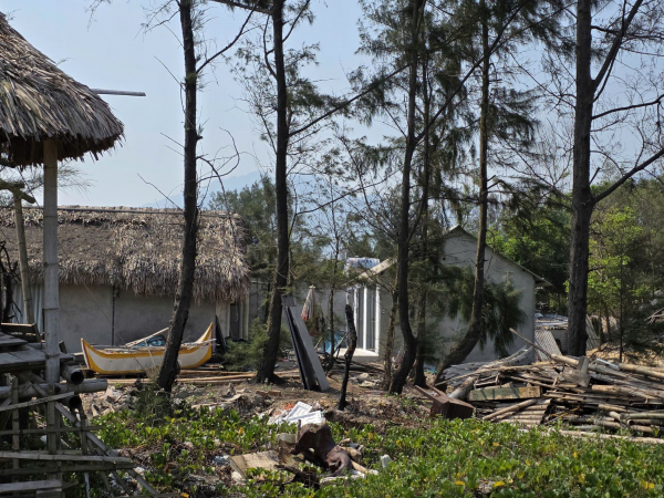 Ba căn nhà mái tranh, tường kính “mọc” trên bãi biển, chưa được xử lý dứt điểm.