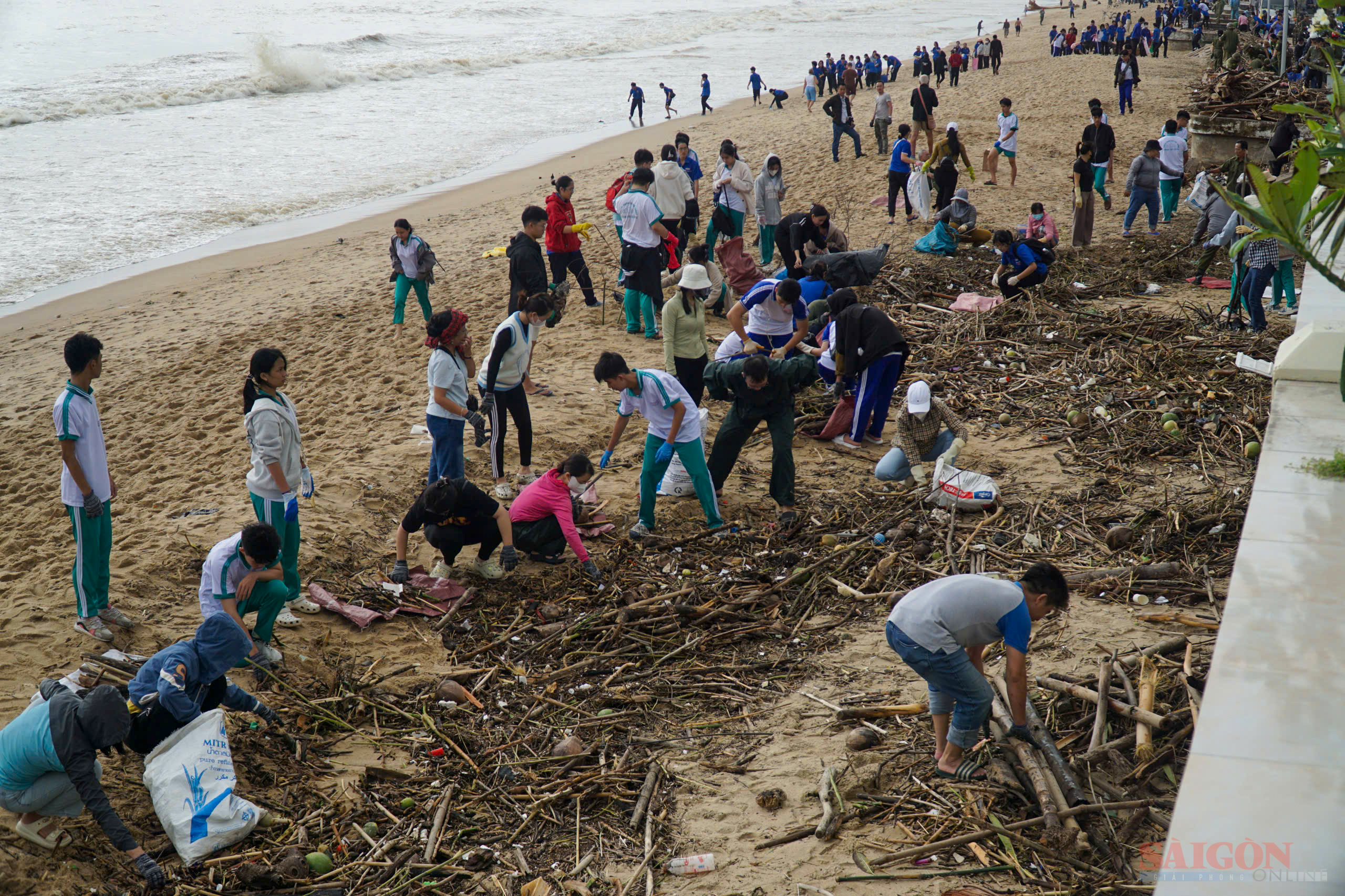 Những ngày qua, lực lượng công nhân môi trường TPHCM đã phối hợp với lực lượng tại Nha Trang, doanh nghiệp, người dân và du khách thu gom, vận chuyển hàng trăm tấn rác đi xử lý.
