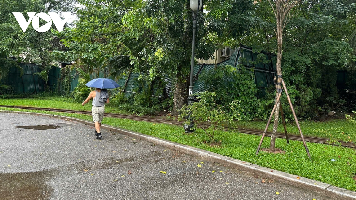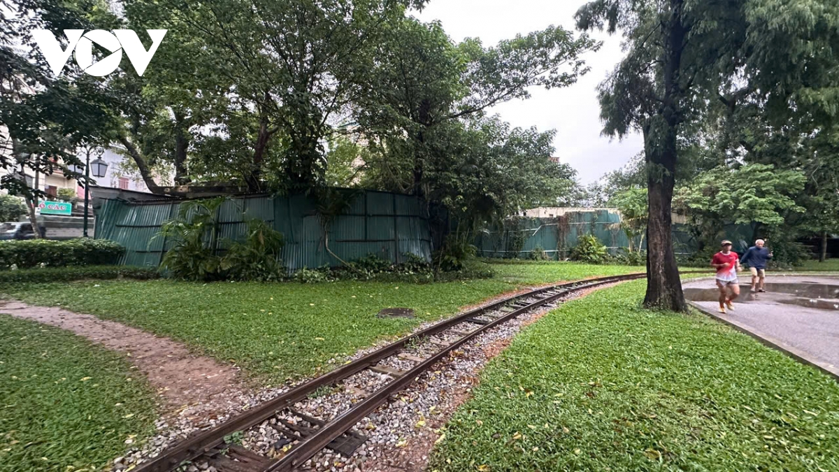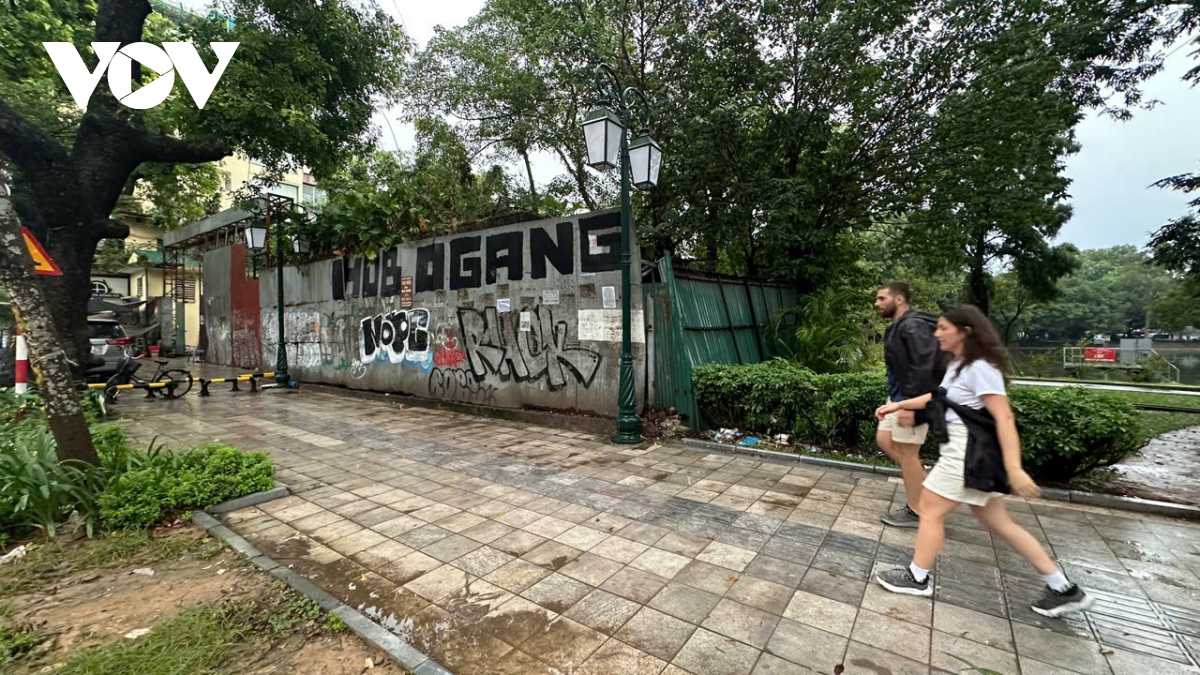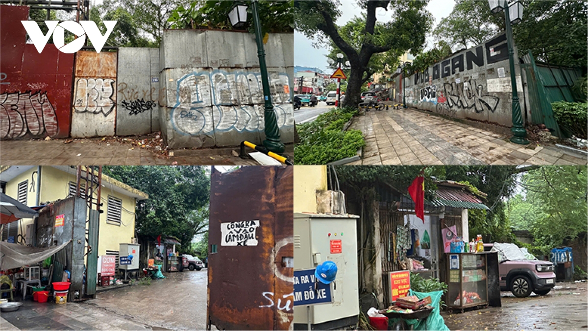 Toàn bộ khu đất quây rào, cổng mở phía mặt phố Lê Duẩn với những hình vẽ sơn nhếch nhác cùng các hàng quán xung quanh khiến cảnh quan công viên đẹp bậc nhất Thủ đô trở nên luộm thuộm.