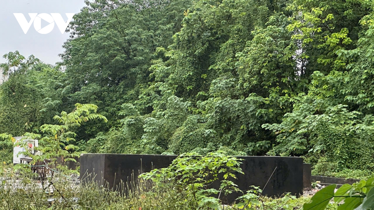 Cỏ dại và rác thải phủ kín bên trong khu đất