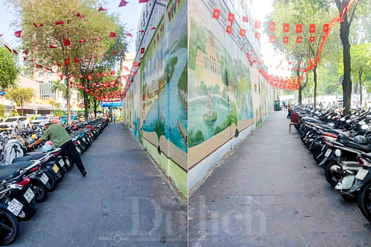 Đặc biệt, khu vực này hiện đang sở hữu bức bích họa “Việt Nam tươi đẹp”, một điểm check-in nổi tiếng thu hút rất đông du khách đến chụp ảnh. Sự hiện diện của các hàng xe máy phía trước vô hình trung làm hạn chế tầm nhìn, ảnh hưởng đến thẩm mỹ của tác phẩm nghệ thuật. Đồng thời, mật độ người và xe quá dày đặc tại đây cũng tiềm ẩn nhiều nguy cơ gây mất an toàn giao thông.