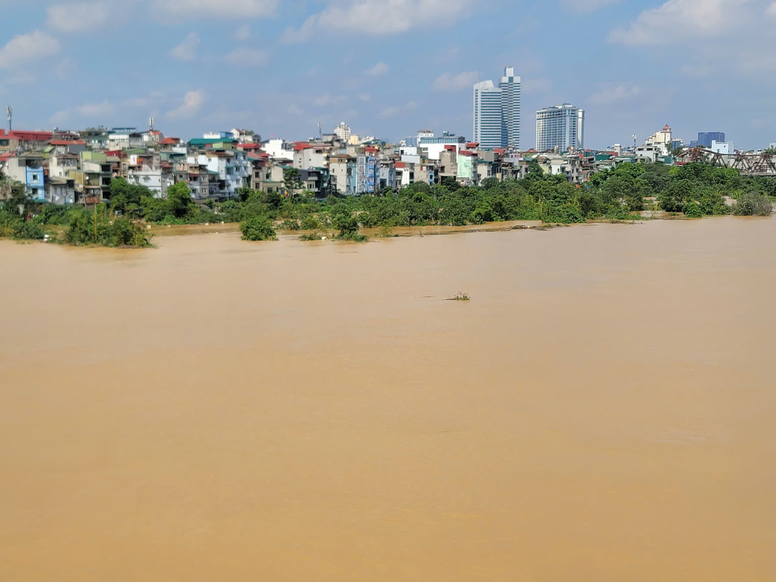 Khu vực ven sông Hồng đoạn cầu Chương Dương và Long Biên mênh mông nước