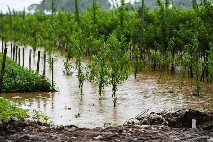 Một ruộng đào Nhật Tân ven sông Hồng bị ngập úng do nước sông dâng cao