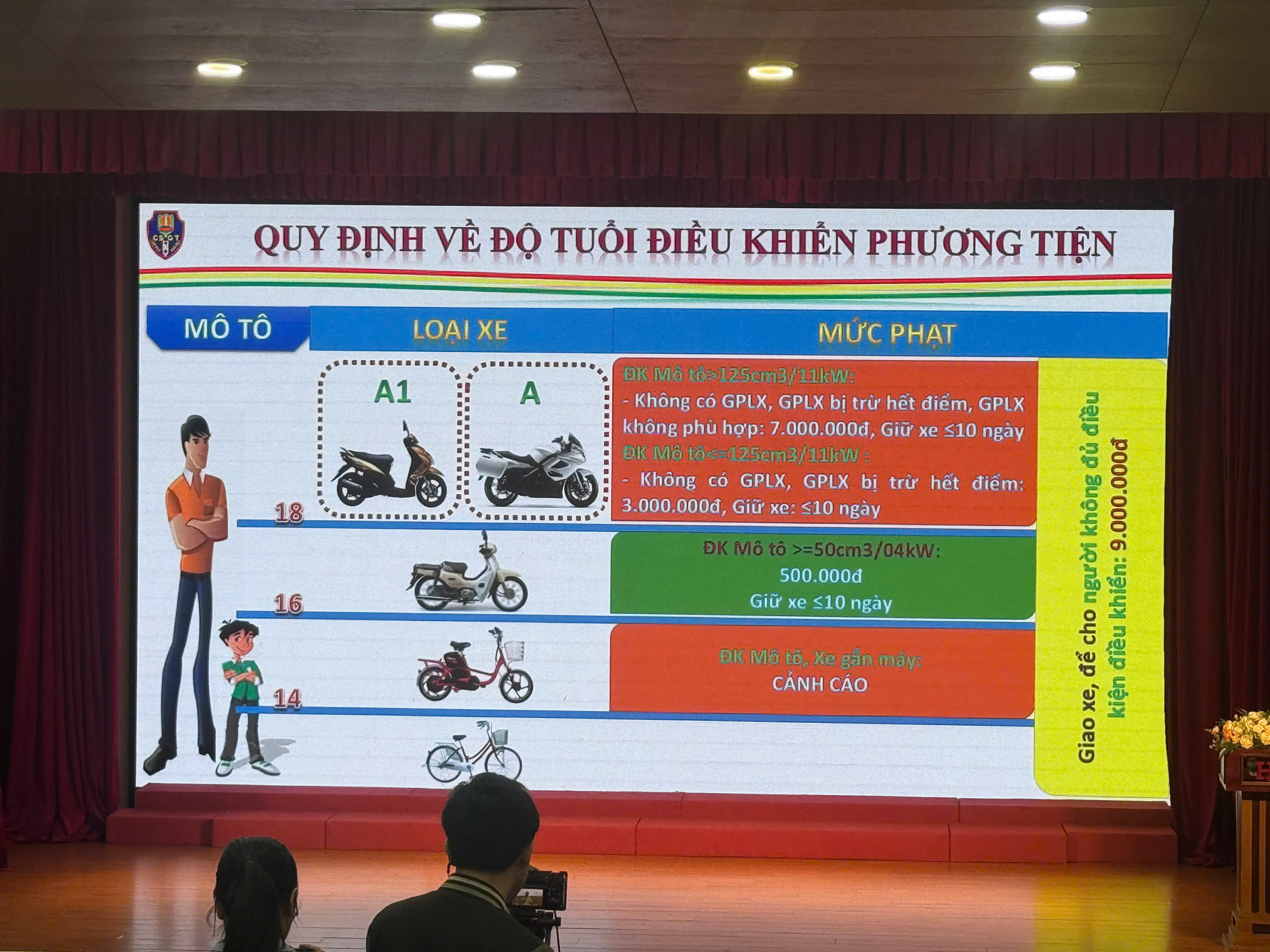 Lực lượng CSGT tổ chức các chương trình tuyên truyền, kiểm tra phương tiện tại bãi giữ xe, trường học, đồng thời mở cao điểm tuần tra, kiểm soát và xử lý vi phạm, bao gồm cả các hành vi vi phạm trực tiếp của học sinh và hành vi giao xe cho người không đủ điều kiện điều khiển phương tiện.