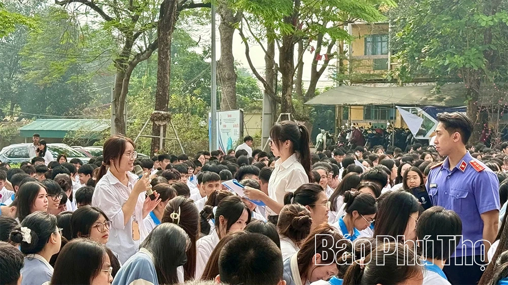 Học sinh tham gia phần hỏi đáp pháp luật do Tòa án nhân dân Khu vực 9 thực hiện.