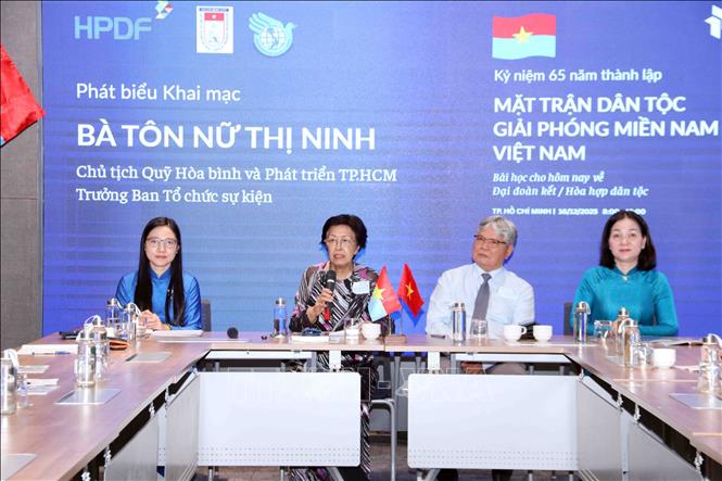 Phát biểu khai mạc, bà Tôn Nữ Thị Ninh, nguyên Phó Chủ nhiệm Ủy ban Đối ngoại Quốc hội, nguyên Đại sứ Việt Nam tại Liên hiệp châu Âu và Bỉ, Chủ tịch Quỹ Hòa bình và Phát triển Thành phố Hồ Chí Minh, Chủ tịch Ủy ban Hòa bình Thành phố Hồ Chí Minh cho biết, tọa đàm là hoạt động thiết thực xây dựng nhịp cầu đoàn kết, cùng nhau nhìn lại lịch sử và quá khứ, hướng tới tương lai, đúc rút ra những bài học thiết thực cho quá trình xây dựng tương lai để tiếp tục thành công của đất nước và dân tộc trong giai đoạn mới.