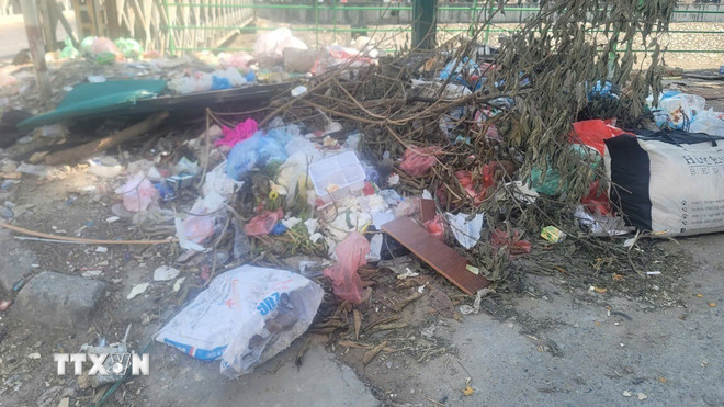Bao lớn, bao bé rác sinh hoạt, đủ loại túi nilon vứt ngổn ngang, khi rác quá nhiều thì đốt, khói đen bốc lên gây cản trở giao thông.
