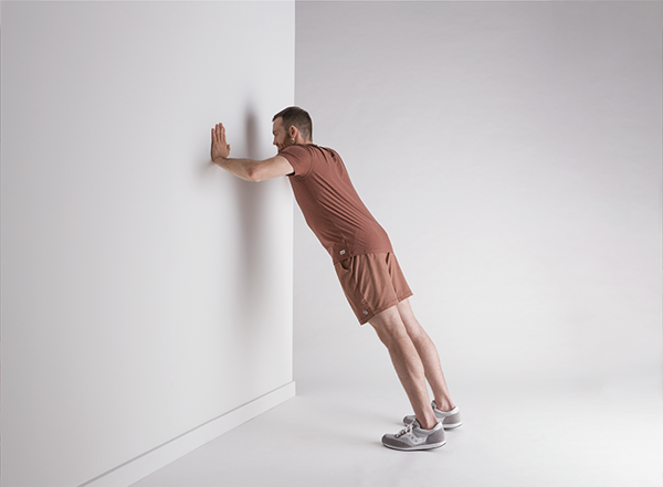 - Đặt lòng bàn tay lên tường, ngang với ngực, đầu ngón tay hướng lên trên.