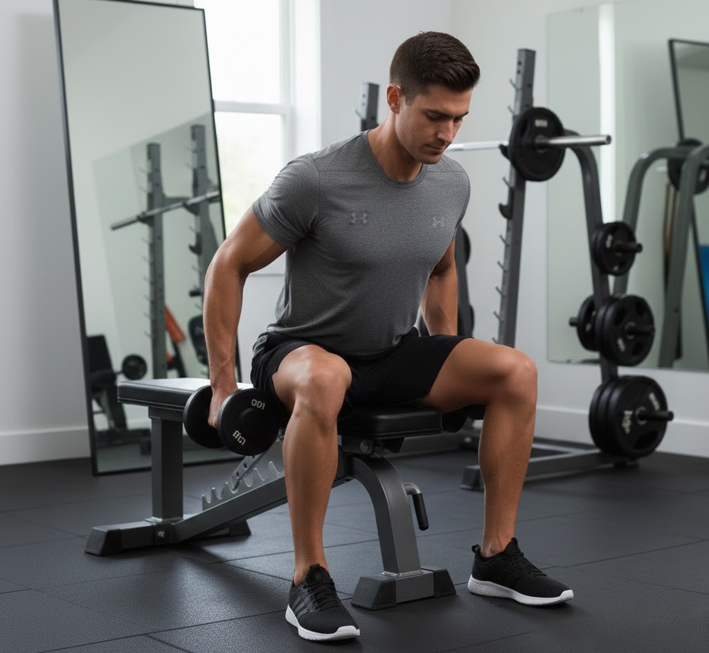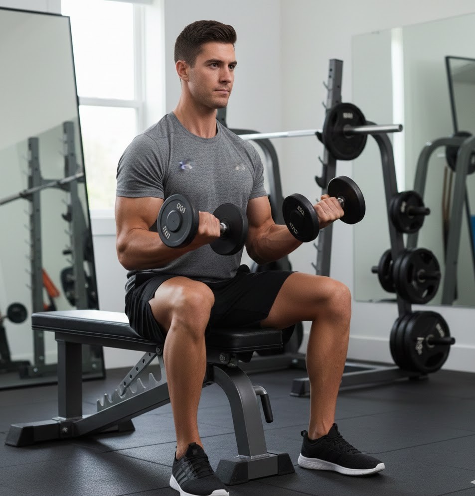 Cuốn tạ tay khi ngồi là bài tập kinh điển giúp tăng cường sức mạnh cơ nhị đầu cánh tay, đồng thời hỗ trợ ổn định khớp vai và khuỷu tay.