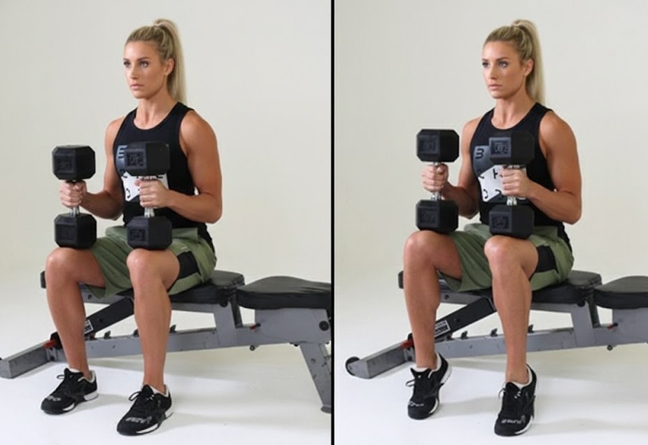 1. Bài tập cuốn tạ tay khi ngồi giúp tăng cường cơ bắp hiệu quả