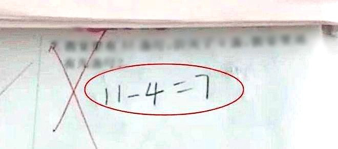 Con làm bài toán "11-4 =7" bị giáo viên gạch sai.