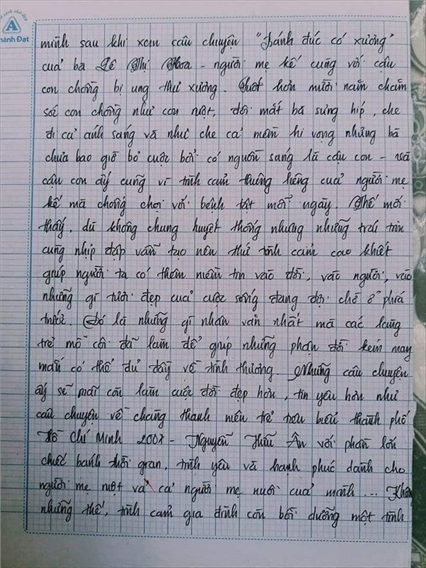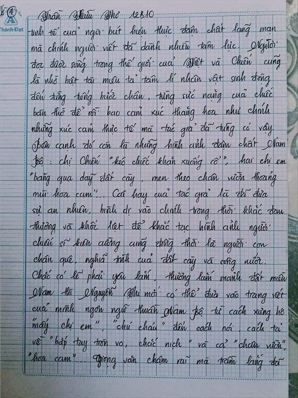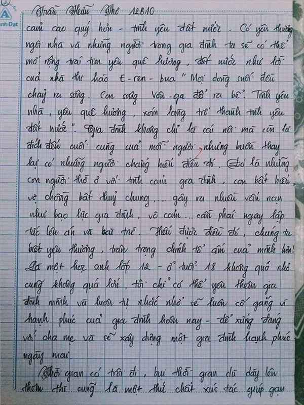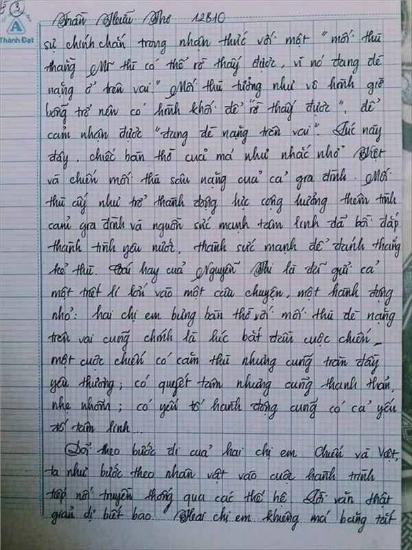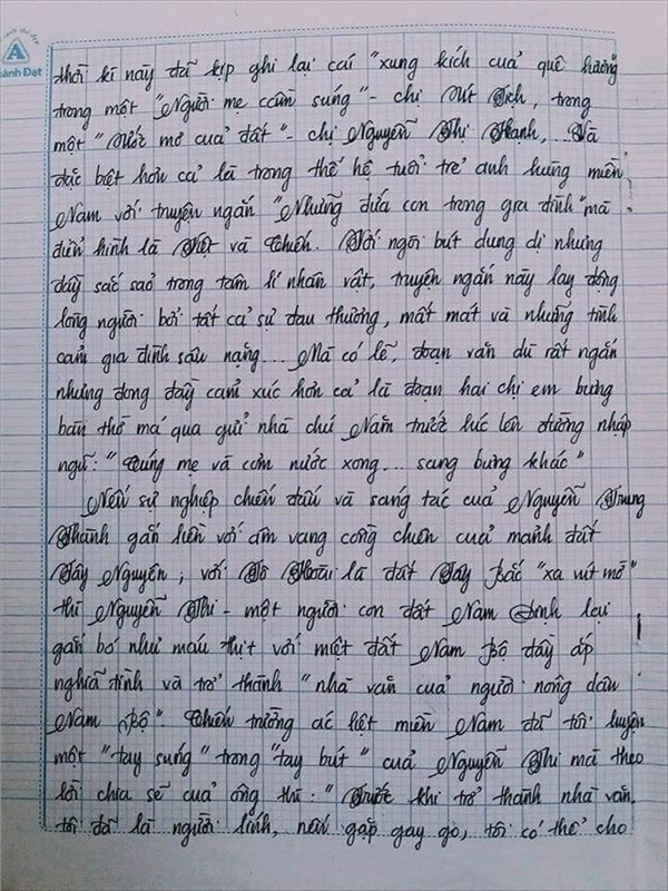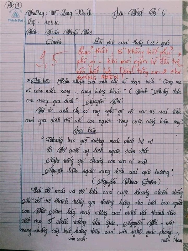 Chủ nhân của bài viết 'xuất sắc từ nội dung đến cả chữ viết' này là Nguyễn Hữu Thơ, học sinh lớp 12B10, trường THPT Long Khánh.