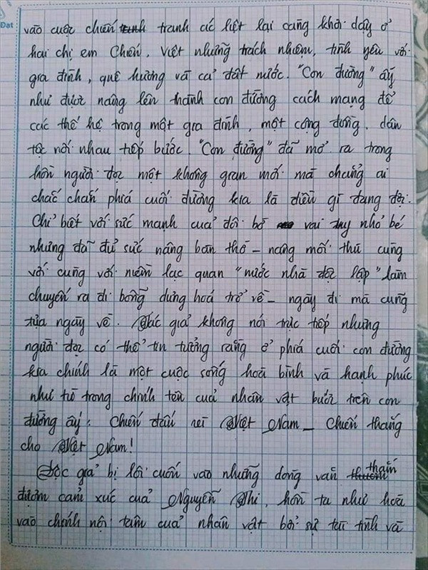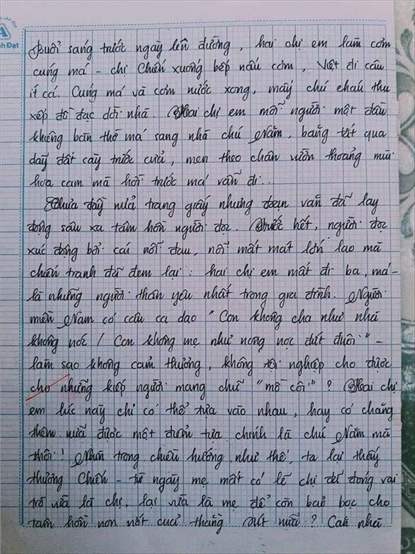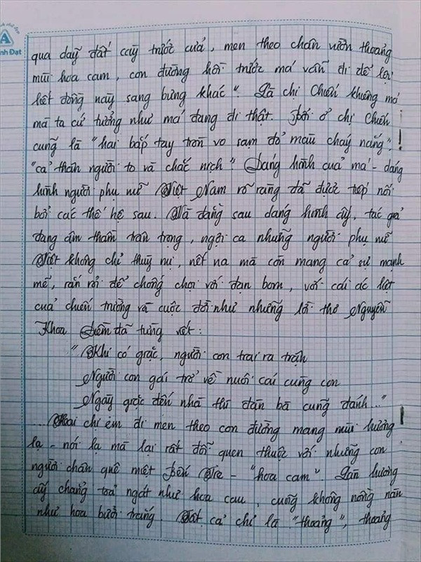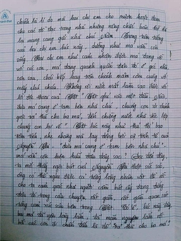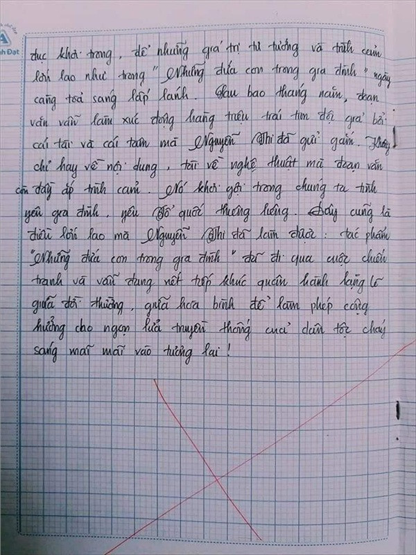 Bài văn này được giáo viên chấm 9.5 điểm, không những vậy, cô giáo phải thốt lên rằng bản thân bất lực, không biết phải phê như thế nào.