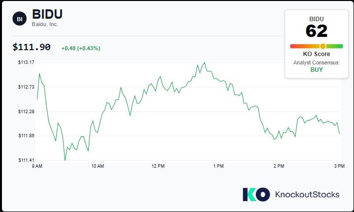 Thông thường, một sự cố kỹ thuật quy mô lớn liên quan đến mảng kinh doanh cốt lõi tương lai sẽ kéo theo một đợt bán tháo trên thị trường chứng khoán. Tuy nhiên, dữ liệu giao dịch thực tế của cổ phiếu Baidu (mã BIDU) lại cho thấy một kịch bản khác biệt. Theo biểu đồ giao dịch trong phiên, mặc dù có thời điểm cổ phiếu BIDU chịu áp lực bán và sụt giảm khá mạnh (rơi xuống vùng 111.41 USD vào khoảng trước 10 giờ sáng hôm qua), nhưng lực cầu đã nhanh chóng quay trở lại.