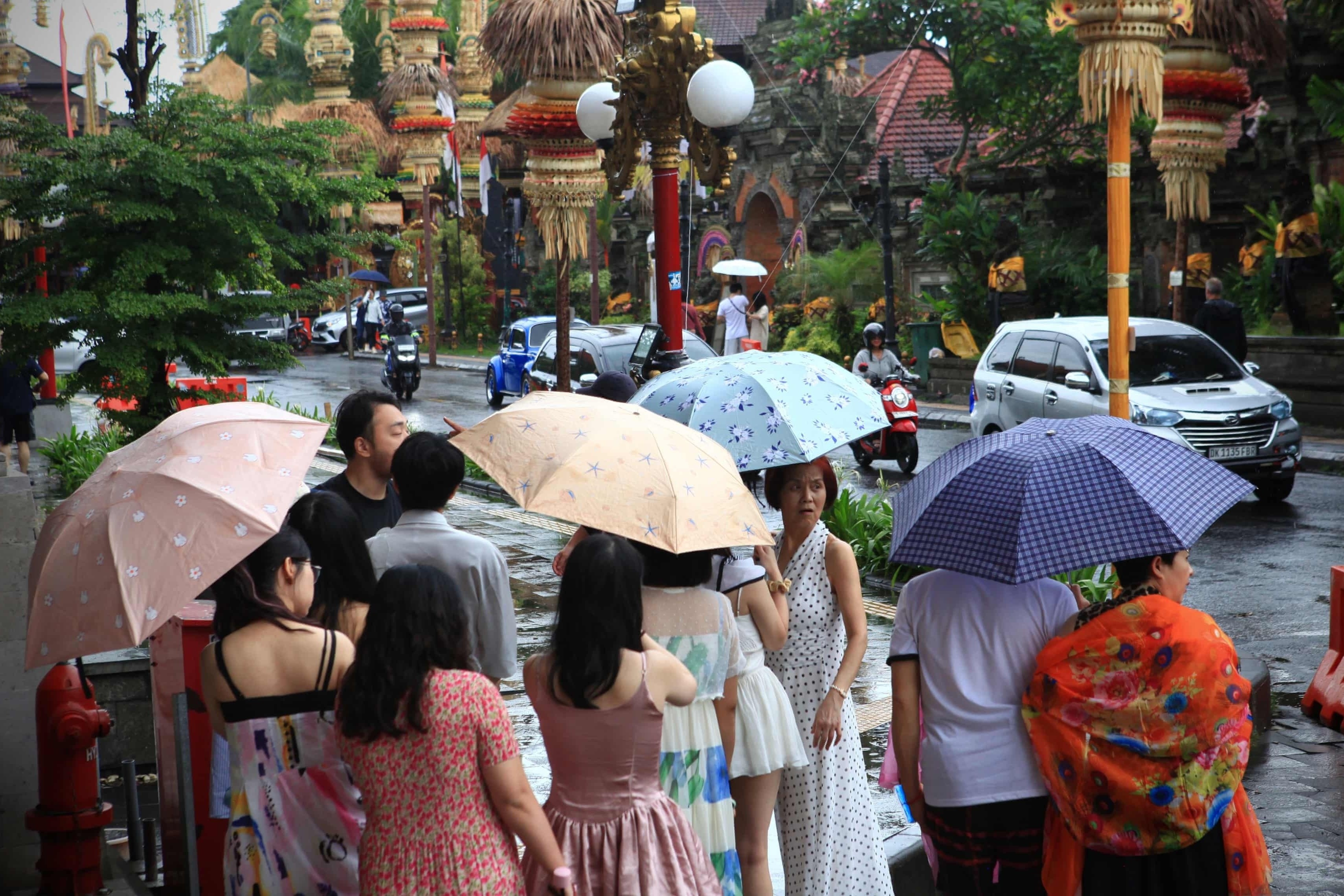 Các đoàn du khách Trung Quốc tập trung tại thị trấn Ubud, Bali, Indonesia, năm 2024. Ảnh: Helen Davidson/The Guardian.