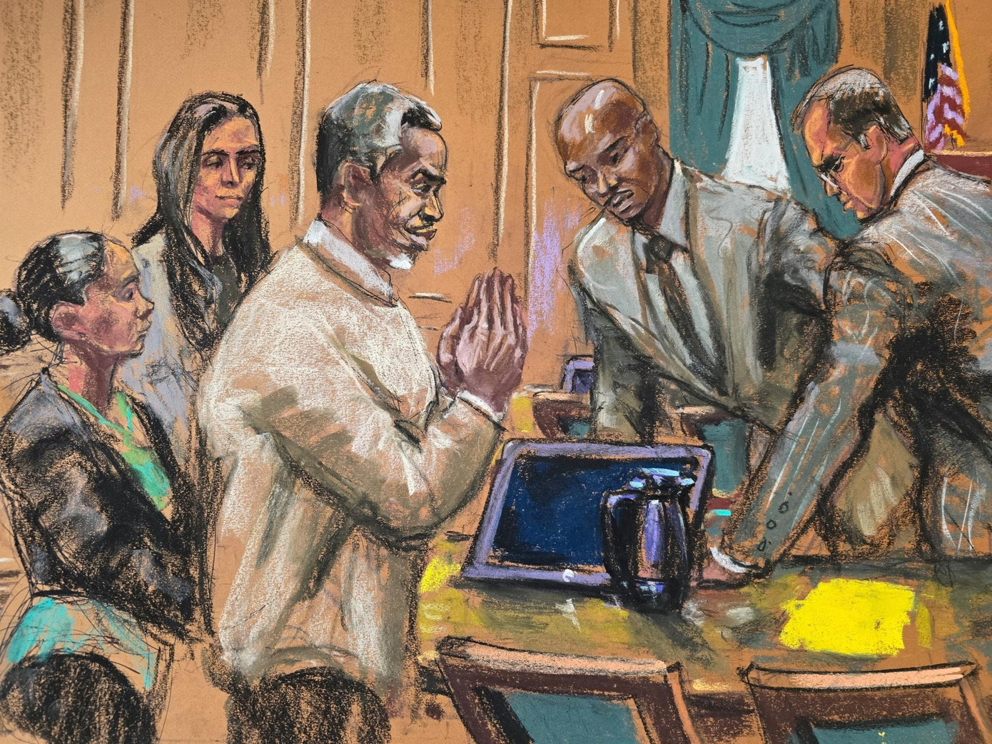 Hình ảnh phác thảo Diddy tại phiên tòa kết án. Ảnh: Reuters.