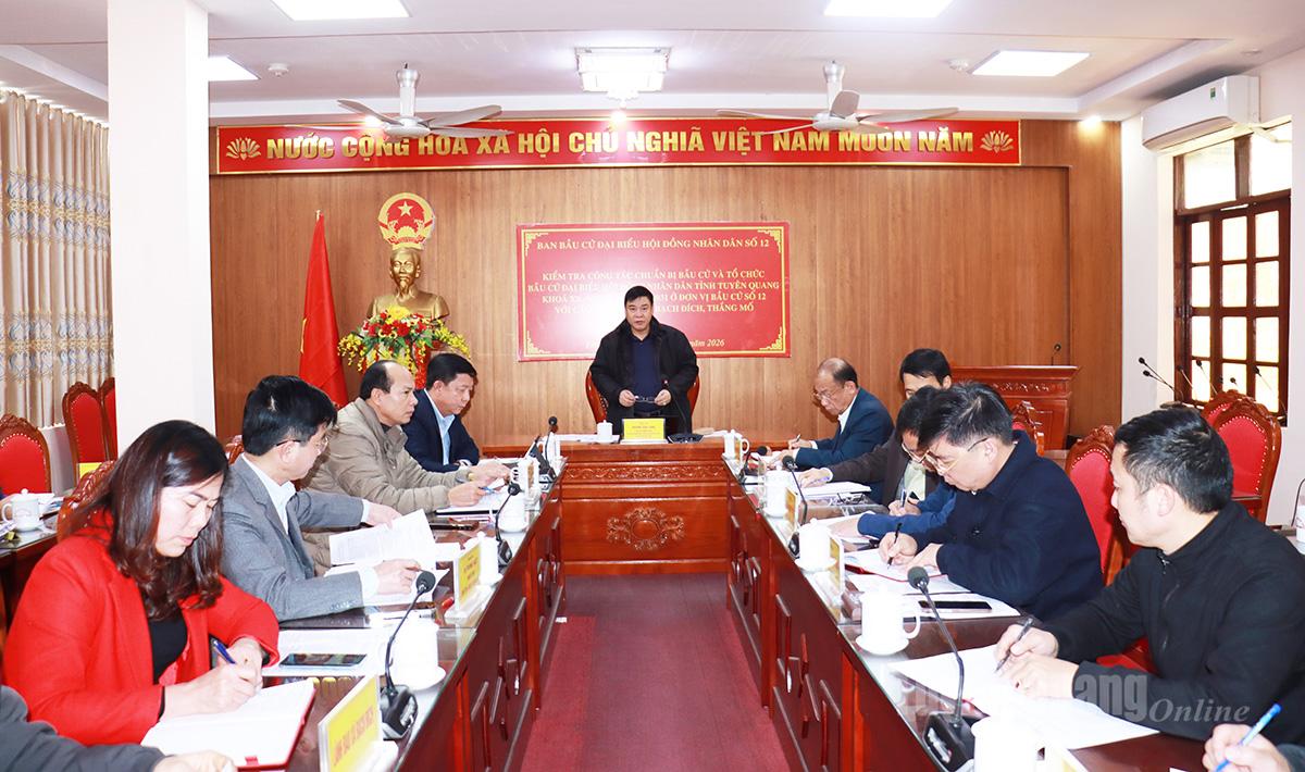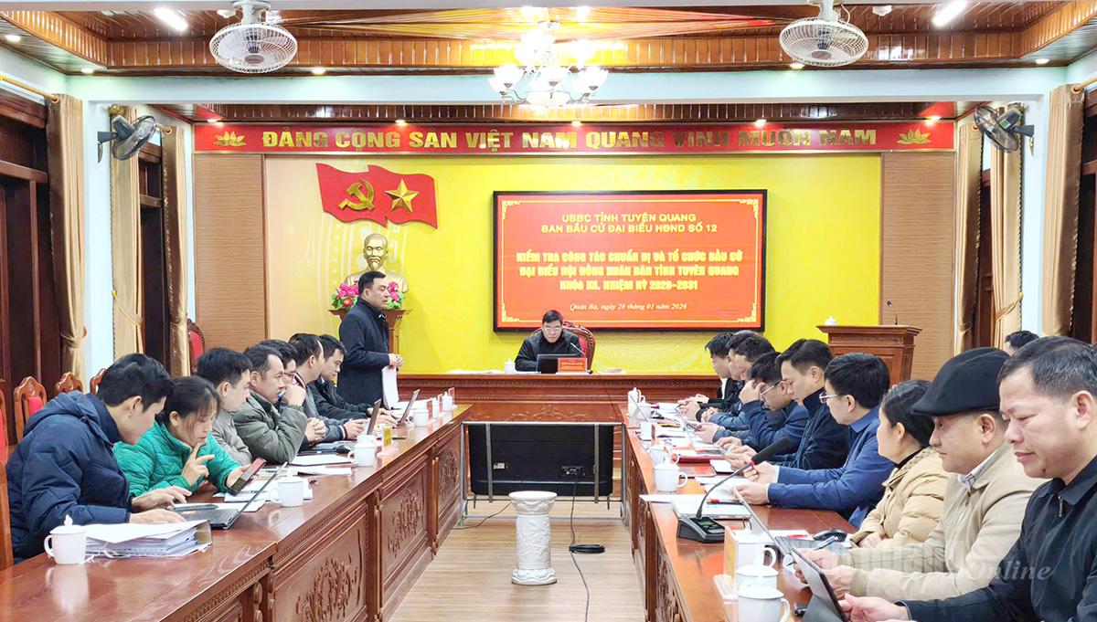 Tại buổi làm việc, Đoàn kiểm tra đã nghe lãnh đạo các xã báo cáo kết quả triển khai công tác chuẩn bị bầu cử. Theo đó, 5 xã đã triển khai nghiêm túc các văn bản chỉ đạo về công tác bầu cử đại biểu HĐND tỉnh Tuyên Quang khóa XX, nhiệm kỳ 2026–2031. Ủy ban bầu cử các xã ban hành kế hoạch, quy chế làm việc, phân công nhiệm vụ cho các thành viên; thành lập tổ giúp việc và tiểu ban phục vụ công tác bầu cử. Công tác hiệp thương lần thứ nhất được tổ chức đúng quy định; các hoạt động tuyên truyền, bảo đảm an ninh trật tự, giải quyết khiếu nại, tố cáo được triển khai đồng bộ…