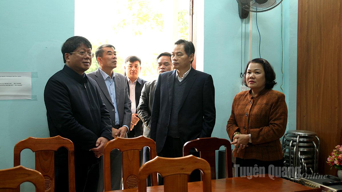Đoàn khảo sát trụ sở làm việc của Đảng ủy, UBND, Ủy ban MTTQ xã Minh Ngọc.