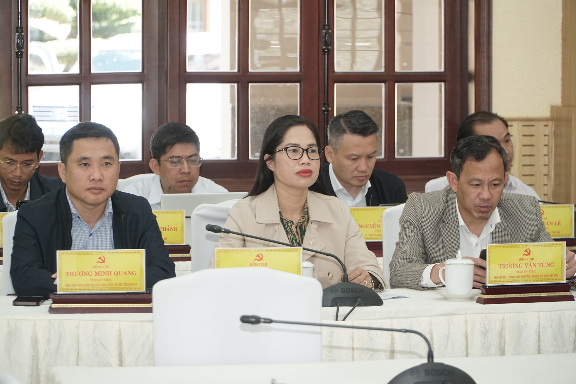 Các đồng chí: Y Thanh Hà Niê Kđăm, Ủy viên Ban Chấp hành Trung ương Đảng, Bí thư Tỉnh ủy, Trưởng Đoàn ĐBQH tỉnh; Hồ Văn Mười, Ủy viên Ban Chấp hành Trung ương Đảng, Phó Bí thư Tỉnh ủy, Chủ tịch UBND tỉnh; Đặng Hồng Sỹ, Phó Bí thư Thường trực Tỉnh ủy; Lưu Văn Trung, Phó Bí thư Tỉnh ủy, Chủ tịch HĐND tỉnh; Phạm Thị Phúc, Phó Bí thư Tỉnh ủy, Chủ tịch Ủy ban MTTQ Việt Nam tỉnh; Bùi Thắng, Phó Bí thư Tỉnh ủy, cùng chủ trì hội nghị.