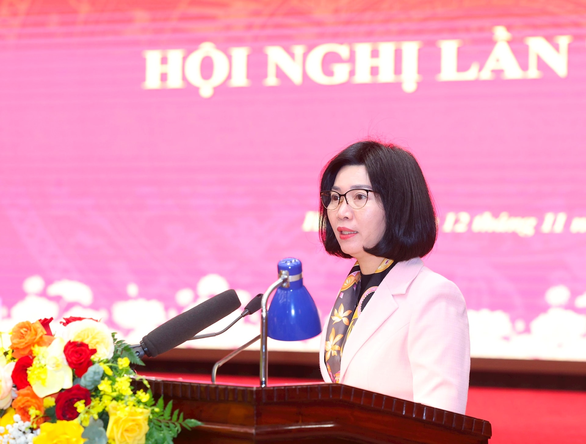 Phó Bí thư Thành ủy Phùng Thị Hồng Hà báo cáo giải trình tại hội nghị. Ảnh: Viết Thành