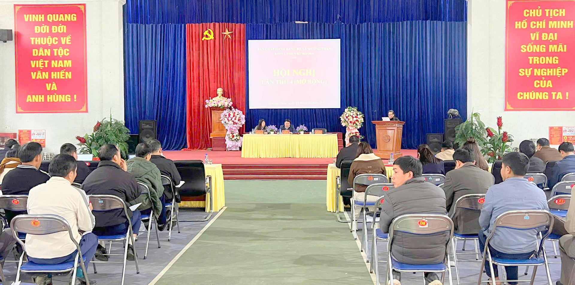 Phát biểu kết luận hội nghị, đồng chí Tao Văn Giót - Bí thư Đảng ủy, Chủ tịch HĐND xã Mường Than đề nghị, trong thời gian tới, toàn Đảng bộ phát huy tinh thần đoàn kết tập trung thực hiện các nhiệm vụ trọng tâm: thực hiện có hiệu quả nghị quyết đại hội đảng các cấp, các chương trình, đề án, nghị quyết chuyên đề của tỉnh; tiếp tục đổi mới, nâng cao chất lượng nghiên cứu, học tập, quán triệt, tuyên truyền và tổ chức thực hiện các chủ trương, nghị quyết của Trung ương, Tỉnh ủy và cấp ủy các cấp, trọng tâm là quán triệt, triển khai kịp thời Nghị quyết Đại hội XIV của Đảng, các nghị quyết của Ban Chấp hành Trung ương khóa XIV và nghị quyết, đề án của Tỉnh ủy nhiệm kỳ 2025-2030; xây dựng nền hành chính xã Mường Than chuyên nghiệp, hiện đại, liêm chính, phục vụ nhân dân; thu hút đầu tư, huy động các nguồn lực để phát triển các khu, điểm du lịch, du lịch cộng đồng theo định hướng phát triển du lịch bền vững gắn với phát huy bản sắc văn hóa truyền thống tốt đẹp các dân tộc…