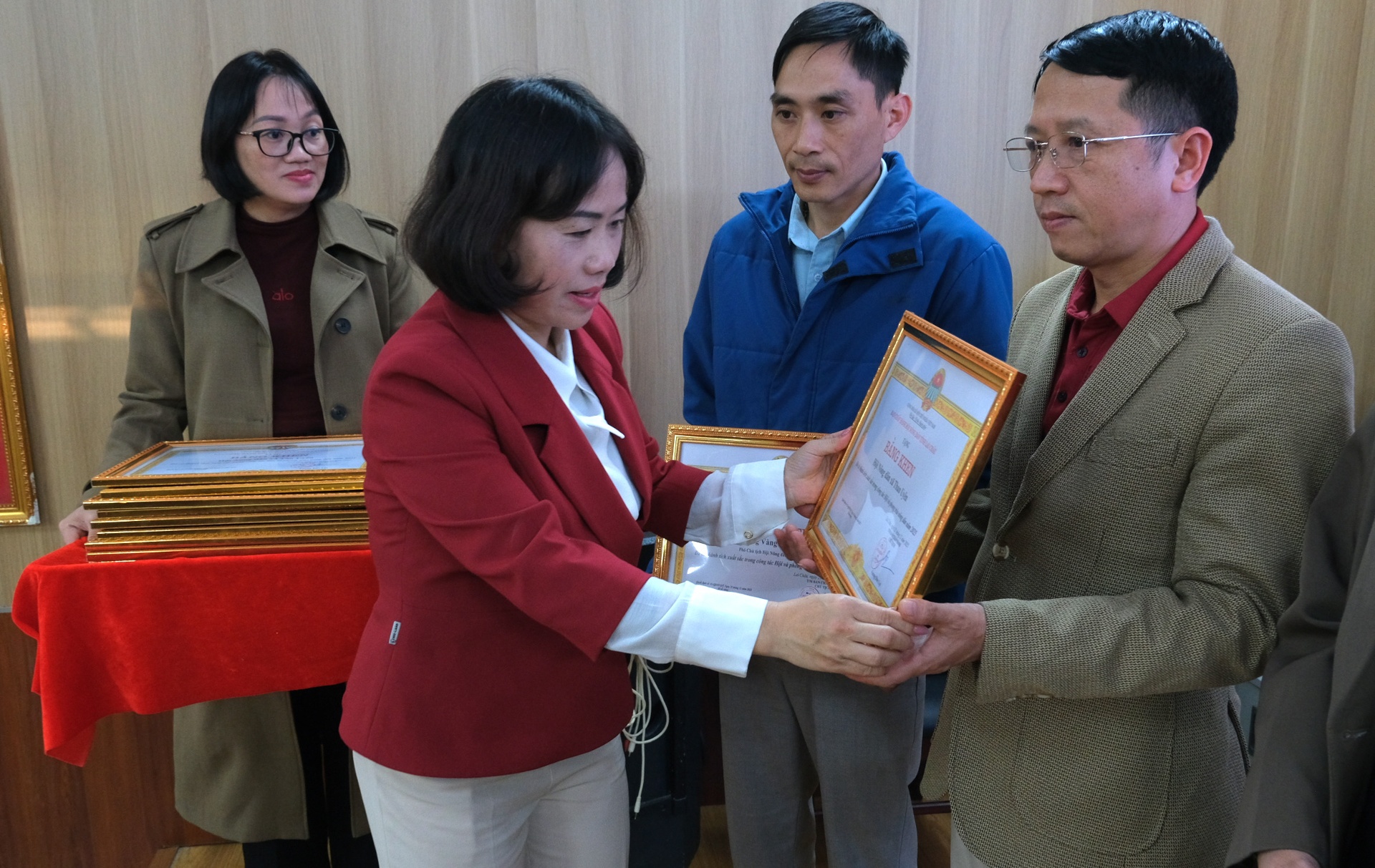 Đồng chí Giàng Thị Hoa – Phó Chủ tịch Hội Nông dân tỉnh trao Bằng khen cho các cá nhân có thành tích xuất sắc trong công tác hội.