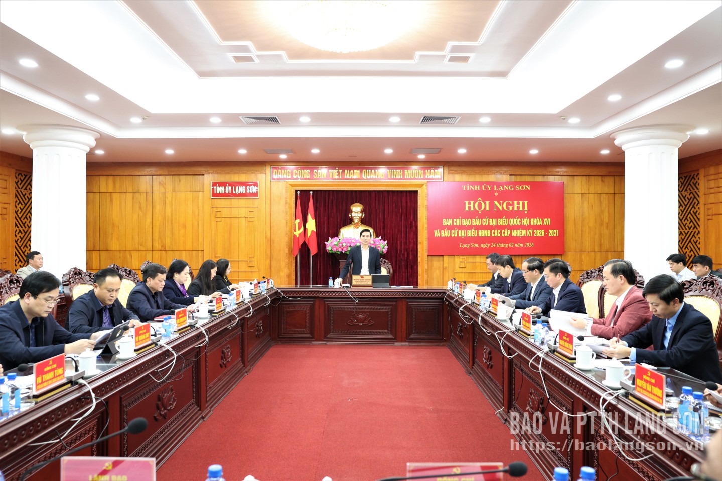 Dự hội nghị có các đồng chí: Đoàn Thị Hậu, Phó Bí thư Thường trực Tỉnh ủy, Chủ tịch HĐND tỉnh, Phó Trưởng ban Thường trực BCĐ bầu cử tỉnh; Nguyễn Cảnh Toàn, Phó Bí thư Tỉnh ủy, Chủ tịch UBND tỉnh, Phó Trưởng BCĐ bầu cử tỉnh, Chủ tịch Ủy ban bầu cử tỉnh; Đoàn Thu Hà, Phó Bí thư Tỉnh ủy, Chủ tịch Ủy ban MTTQ Việt Nam tỉnh, Phó Trưởng BCĐ bầu cử tỉnh; Vũ Hoàng Anh, Phó Bí thư Tỉnh ủy, Phó Trưởng BCĐ bầu cử tỉnh và các thành viên BCĐ bầu cử tỉnh.