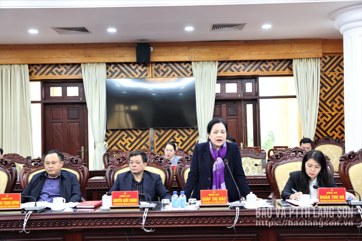 Đồng chí Giáp Thị Bắc, Ủy viên Ban Thường vụ Tỉnh ủy, Trưởng Ban Tổ chức Tỉnh ủy phát biểu tại hội nghị