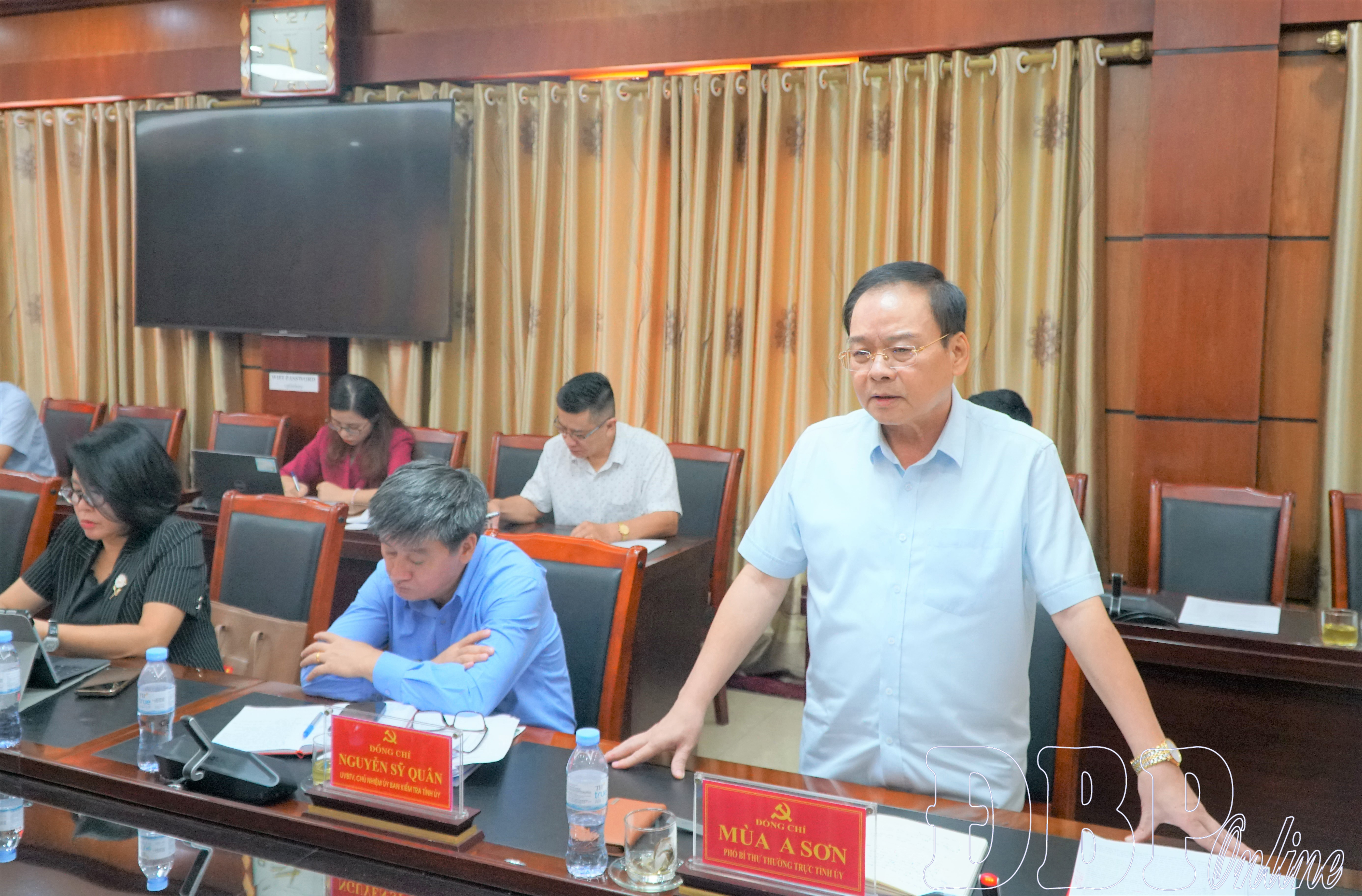 Phó Bí thư Thường trực Tỉnh ủy Mùa A Sơn phát biểu ý kiến tại phiên họp.