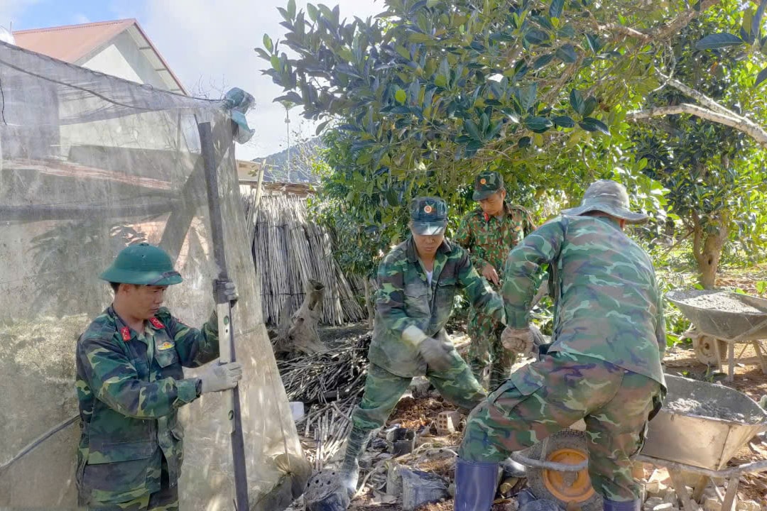 Dưới sự chỉ đạo sâu sát của Đảng ủy và Ban Chỉ huy đơn vị, tổ công tác do Trung tá Lê Phi Líp, Chính trị viên Tiểu đoàn KTT, chỉ huy, đã triển khai hàng trăm ngày công giúp 4 hộ gia đình trên địa bàn sửa lại nhà cửa, xây dựng ta-luy, bờ tường và ổn định đời sống.