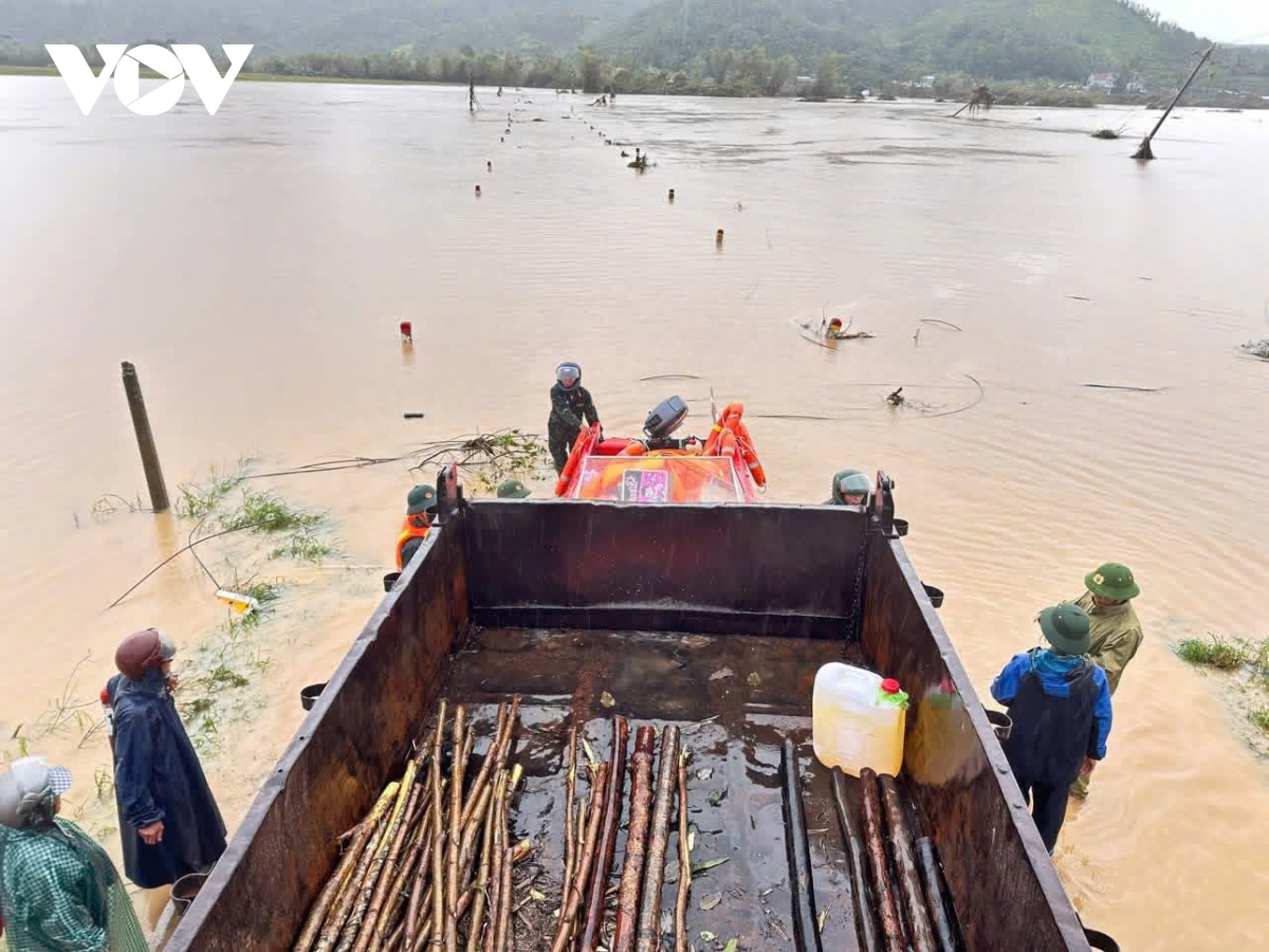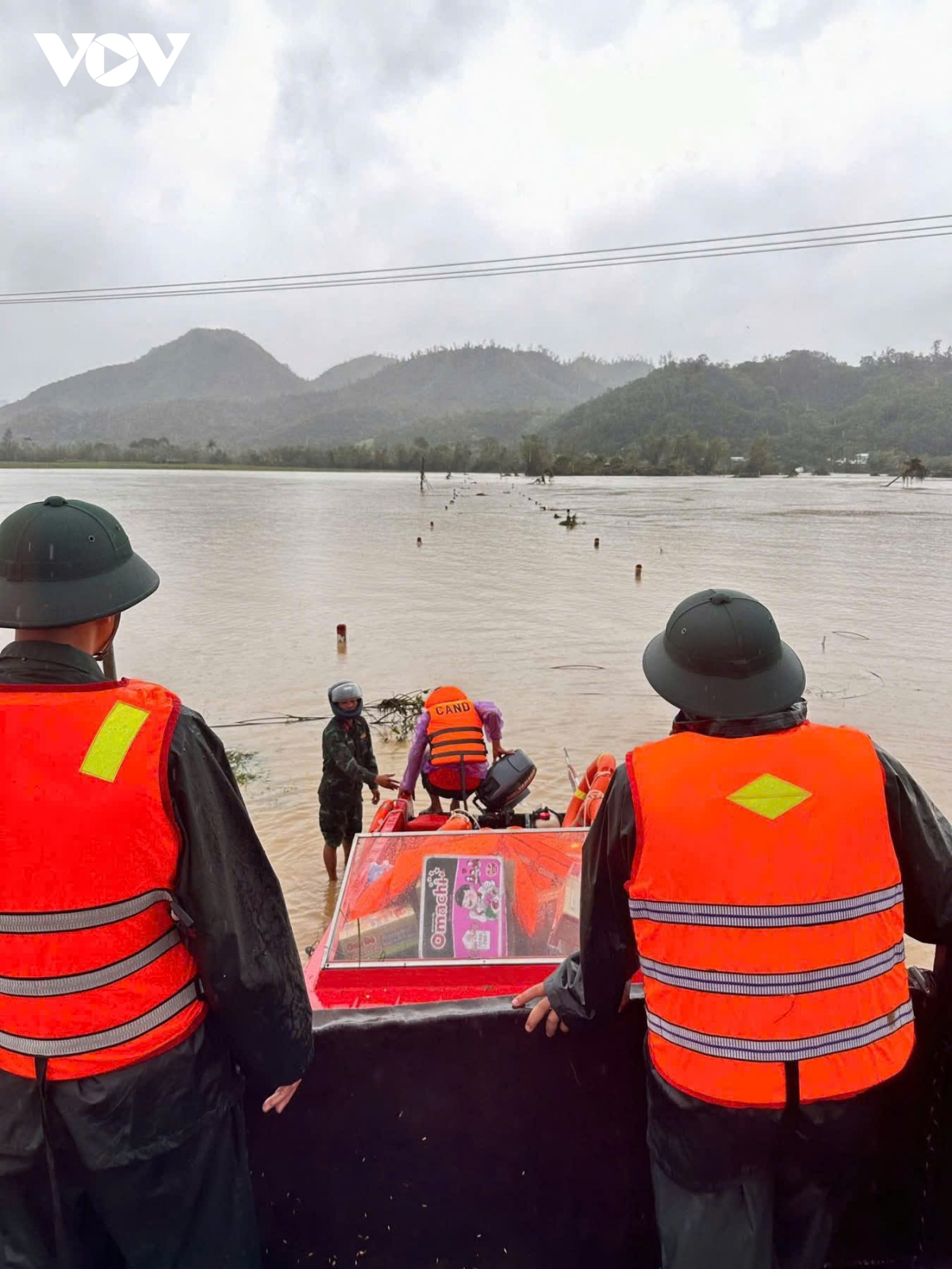 Ngay từ rạng sáng, cán bộ, chiến sĩ đã có mặt tại các điểm ngập sâu, hỗ trợ di dời người già, trẻ em, hộ gia đình vùng lũ đến nơi an toàn; đồng thời phối hợp lực lượng công an, dân quân địa phương tổ chức cứu hộ, vận chuyển nhu yếu phẩm như mì tôm, nước uống, áo phao đến các khu vực bị cô lập.