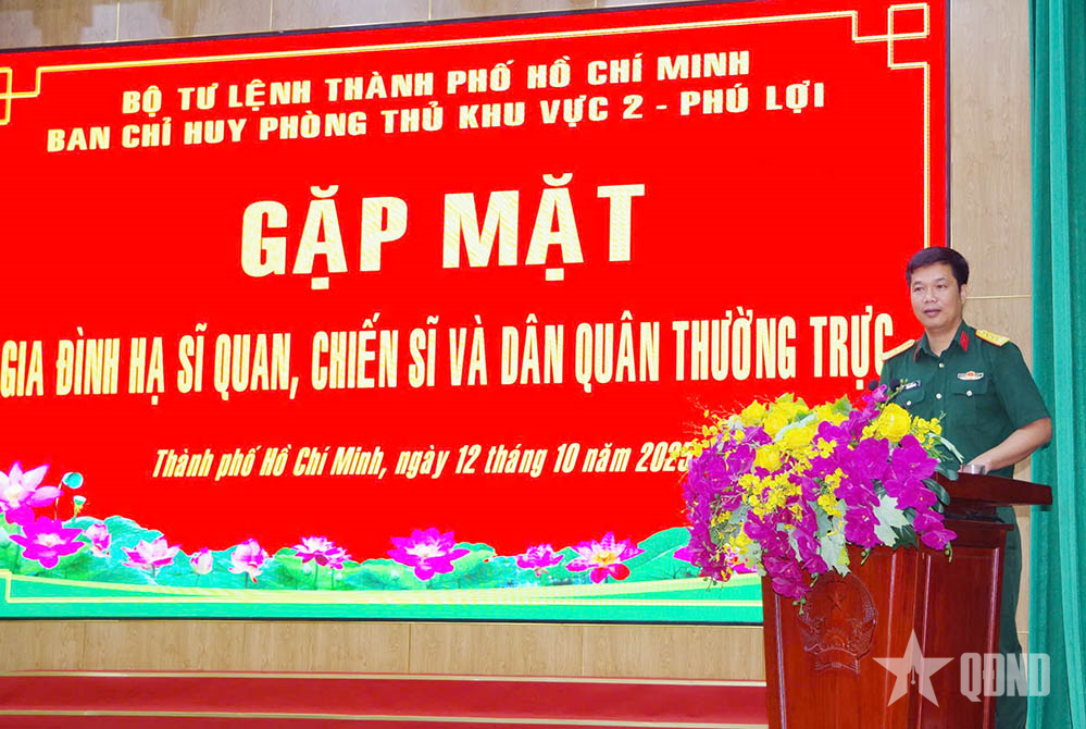 Phát biểu tại buổi gặp mặt, Thượng tá Hoàng Việt Anh, Phó chính ủy Ban Chỉ huy Phòng thủ khu vực 2 - Phú Lợi ghi nhận, biểu dương tinh thần trách nhiệm, ý thức tổ chức kỷ luật và những đóng góp tích cực của hạ sĩ quan, chiến sĩ và dân quân thường trực trong thời gian qua; đồng thời khẳng định, buổi gặp mặt là dịp để đơn vị lắng nghe, chia sẻ, củng cố mối quan hệ gắn bó giữa chỉ huy đơn vị với thân nhân, gia đình quân nhân.