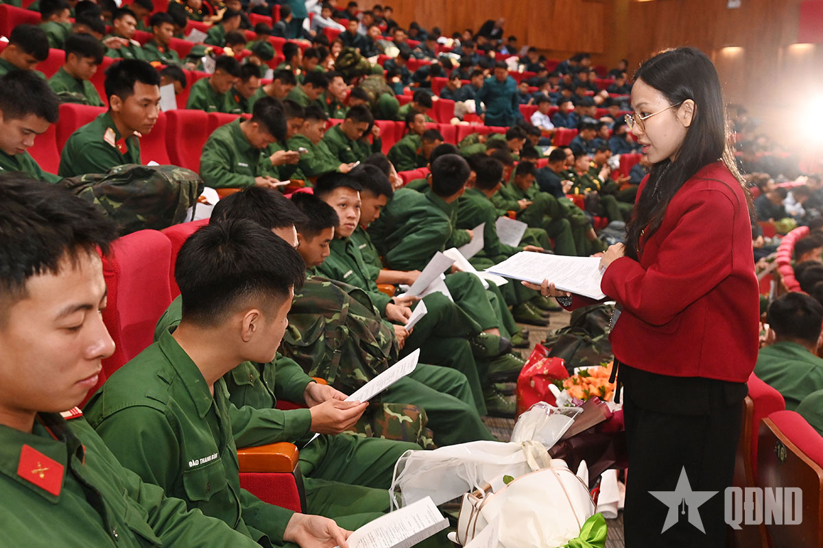 Quang cảnh lễ đón nhận quân nhân hoàn thành nghĩa vụ quân sự.