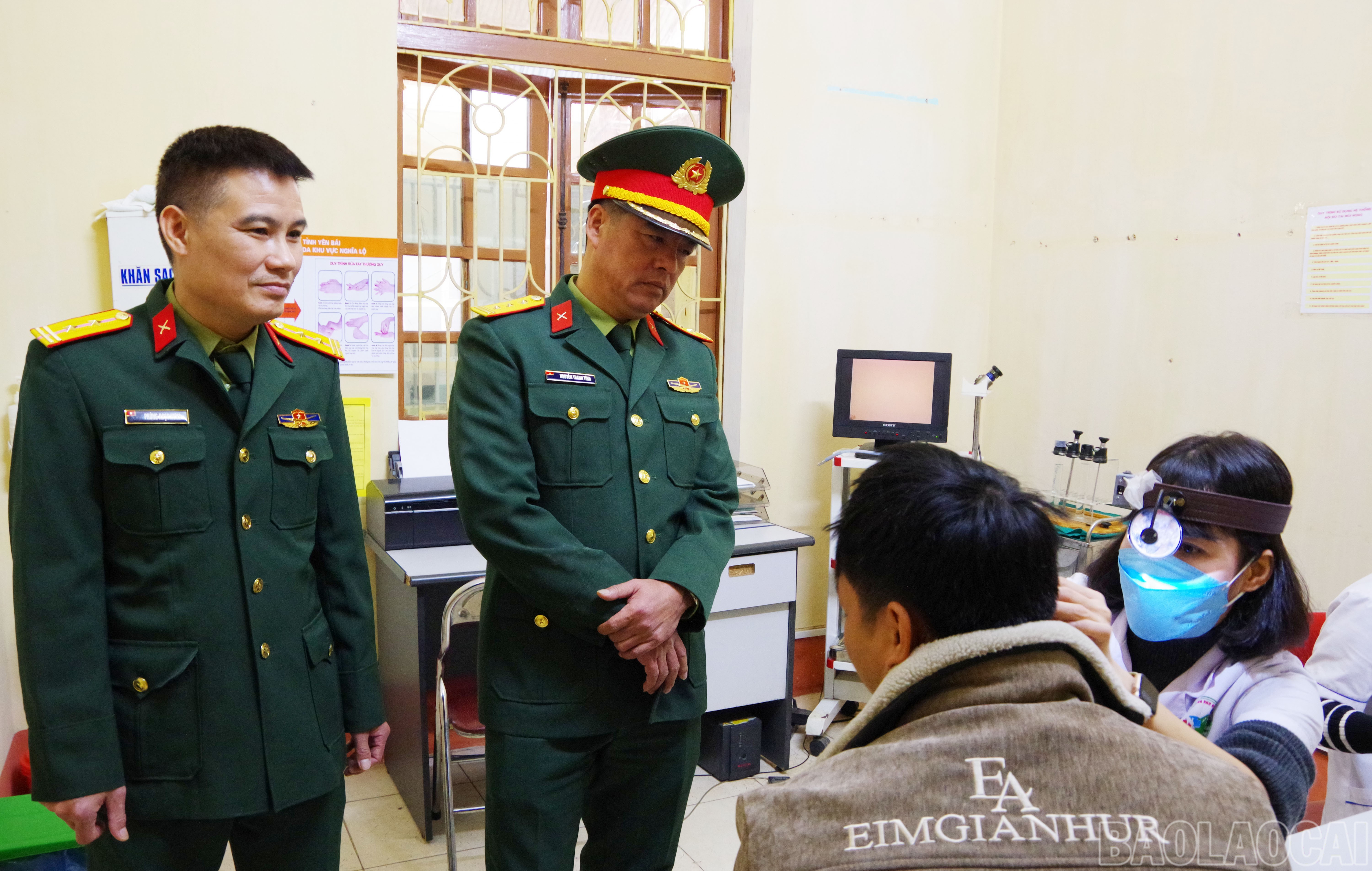Thượng tá Nguyễn Thanh Tĩnh và lãnh đạo Bệnh viện Đa khoa số 3 kiểm tra công tác khám sức khỏe cho công dân.
