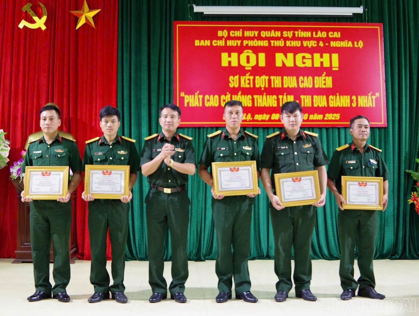 Tại hội nghị, Ban Chỉ huy Phòng thủ Khu vực 4 - Nghĩa Lộ tặng Giấy khen cho 5 cá nhân có thành tích xuất sắc trong đợt thi đua cao điểm, ghi nhận sự nỗ lực và đóng góp tích cực của các cán bộ, chiến sĩ.