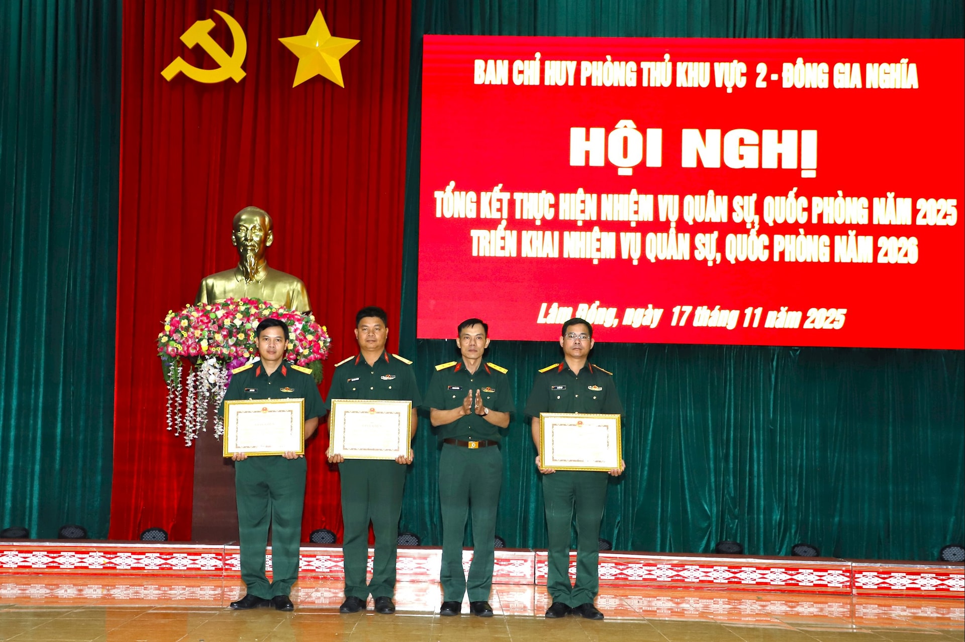 Tại hội nghị, Ban Chỉ huy PTKV 2 - Đông Gia Nghĩa đã khen thưởng các tập thể, cá nhân đạt danh hiệu Chiến sĩ thi đua, Chiến sĩ tiên tiến năm 2025; đồng thời xác định phương hướng năm 2026.