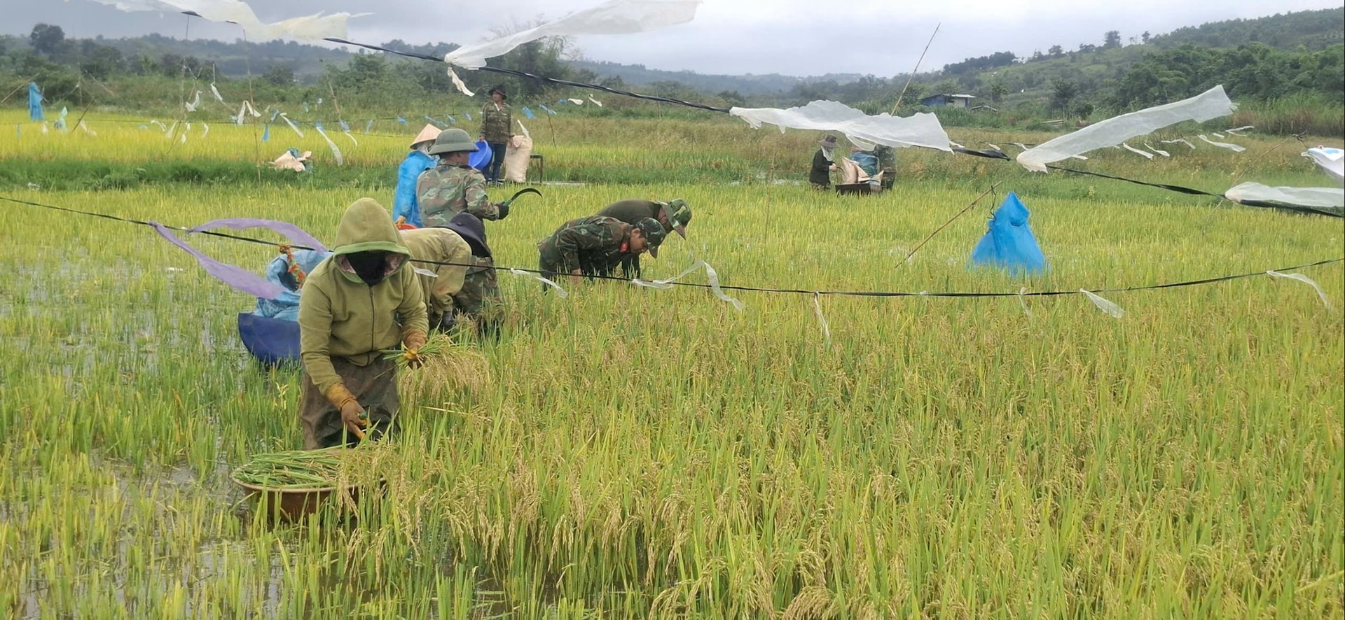 Các Cán bộ, chiến sĩ thuộc Ban Chỉ huy PTKV2 - Đông Gia Nghĩa giúp dân thu hoạch mùa vụ