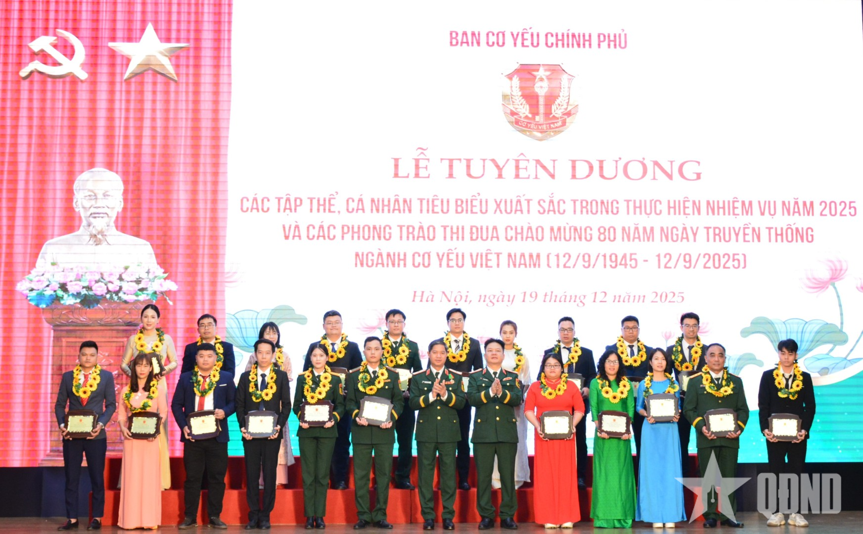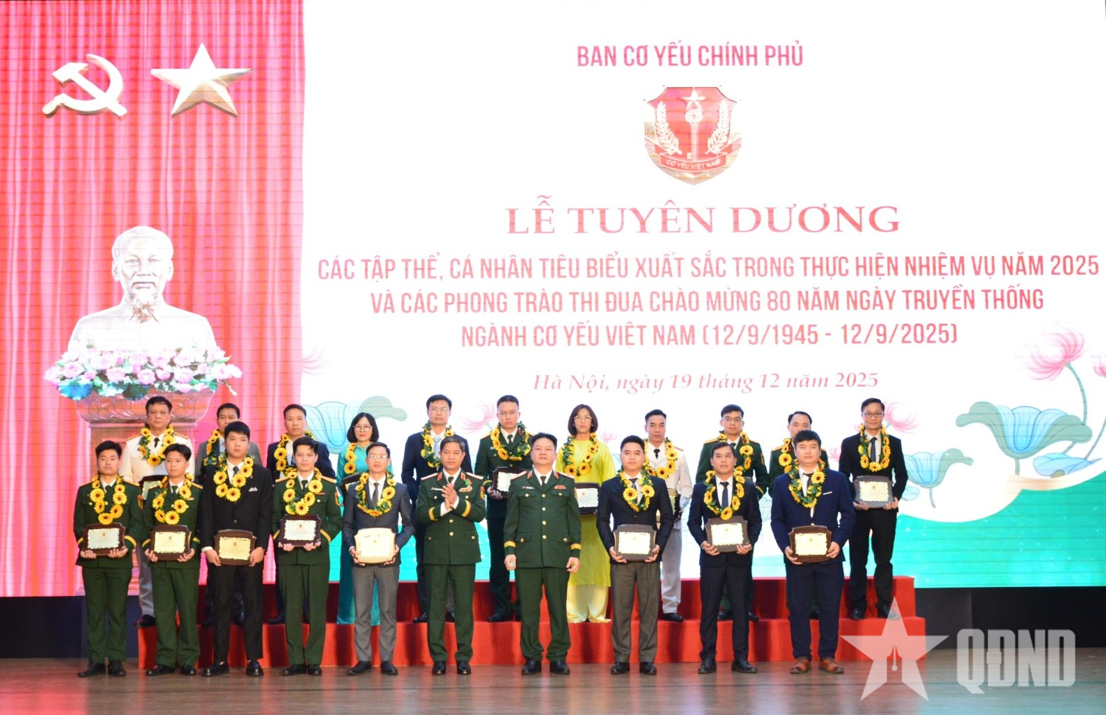 Cũng tại buổi lễ, lãnh đạo Ban Cơ yếu Chính phủ trao bằng khen của Thủ tướng Chính phủ tặng 8 cá nhân có nhiều thành tích đột xuất trong huấn luyện, sẵn sàng chiến đấu góp phần vào sự nghiệp xây dựng Quân đội, củng cố quốc phòng và bảo vệ Tổ quốc; tuyên dương, khen thưởng 27 tập thể và 56 cá nhân có thành tích xuất sắc trong thực hiện nhiệm vụ năm 2025; tuyên dương 13 Gương mặt trẻ tiêu biểu, Gương mặt trẻ triển vọng của Ban Cơ yếu Chính phủ và ngành Cơ yếu Việt Nam năm 2024; tuyên dương 3 tập thể, 8 hội viên phụ nữ tiêu biểu Ban Cơ yếu Chính phủ, giai đoạn 2020 - 2025.