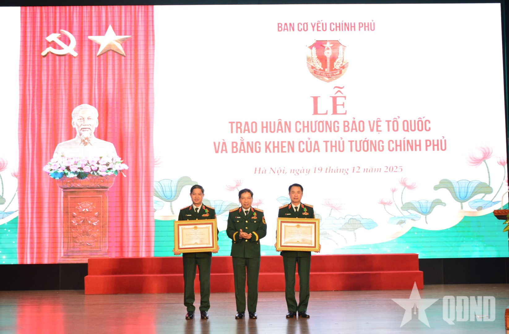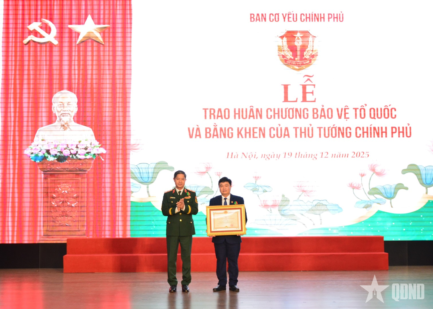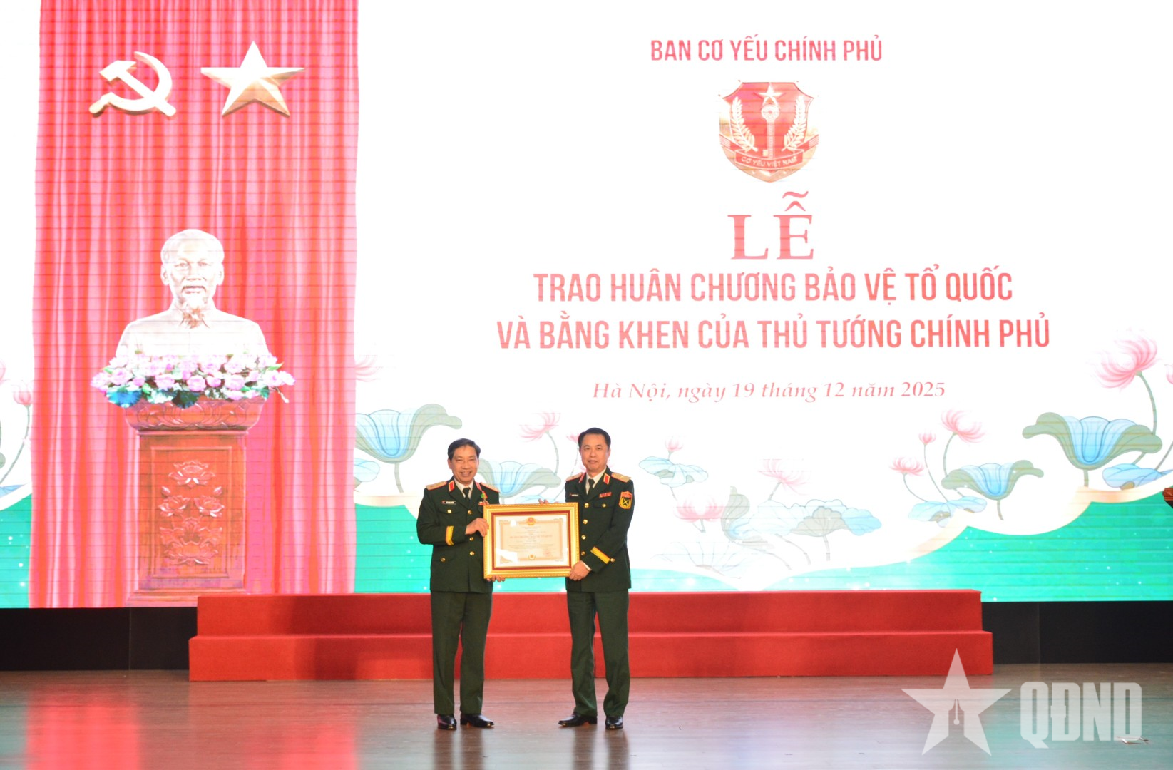 Thừa ủy quyền của Chủ tịch nước, lãnh đạo Ban Cơ yếu Chính phủ trao Huân chương Bảo vệ Tổ quốc hạng Nhì tặng Trung tướng Vũ Ngọc Thiềm, Trưởng ban Cơ yếu Chính phủ.