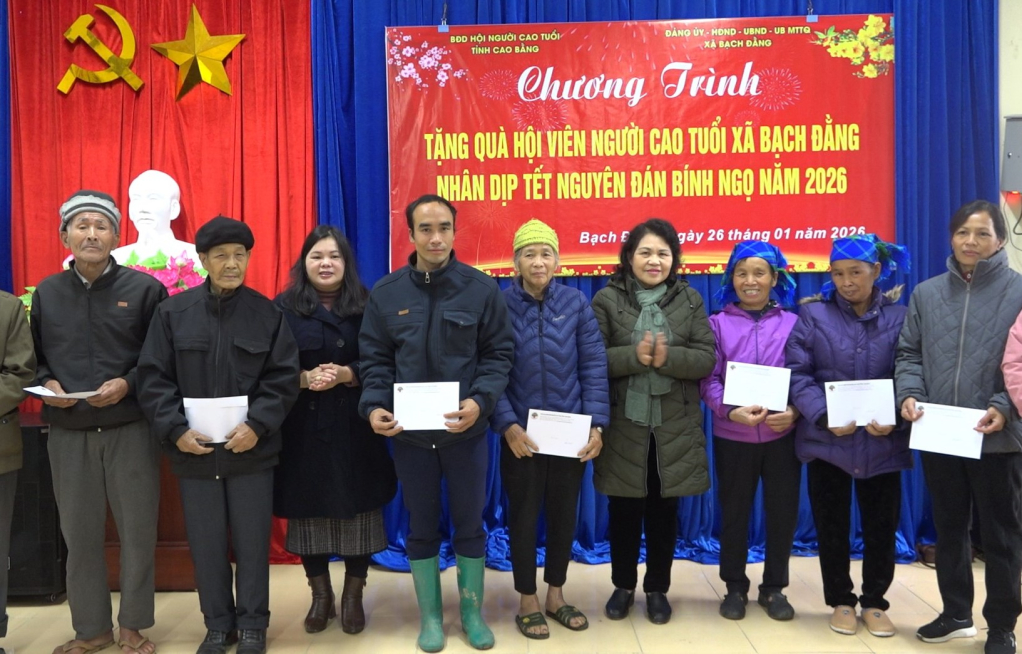 Nhân dịp này, lãnh đạo xã Bạch Đằng cũng trao tặng 50 suất quà, mỗi suất trị giá 200 nghìn đồng, góp phần động viên, chia sẻ khó khăn, giúp người cao tuổi đón Tết vui tươi, ấm áp.