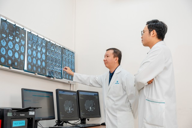 Các chuyên gia đang phân tích kết quả chẩn đoán hình ảnh của người bệnh. Ảnh: HM