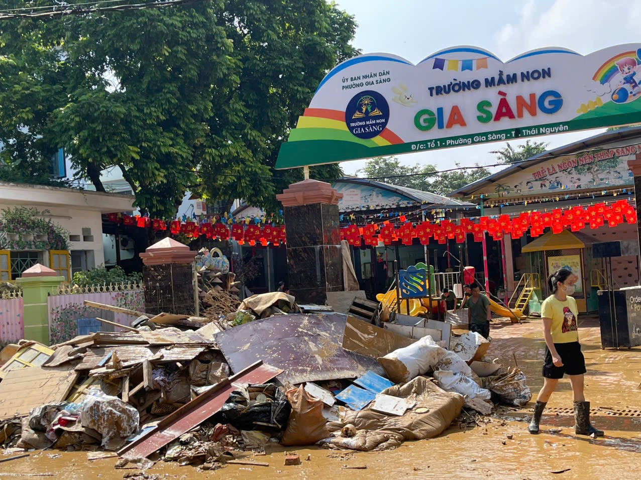 Trường học tại Thái Nguyên ngổn ngang sau lũ. Ảnh: Dương Triều