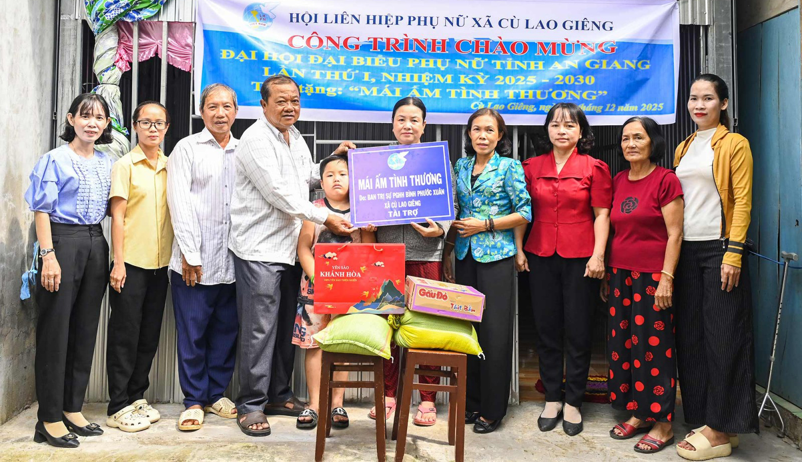 Dịp này, Hội Liên hiệp Phụ nữ xã Cù Lao Giêng, Ban Trị sự Giáo hội Phật giáo Hòa Hảo Bình Phước Xuân tặng quà cho các gia đình.