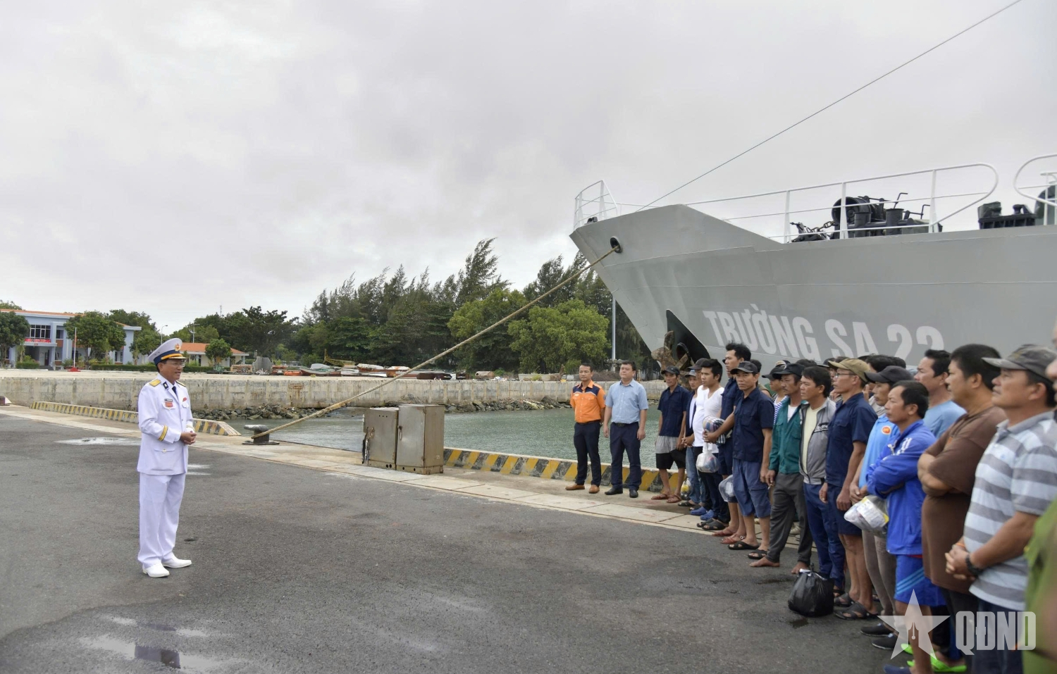 Ngày 20-12, tàu Trường Sa 22 cơ động đưa 52 ngư dân trên tàu cá QNa 91917 TS về đất liền.